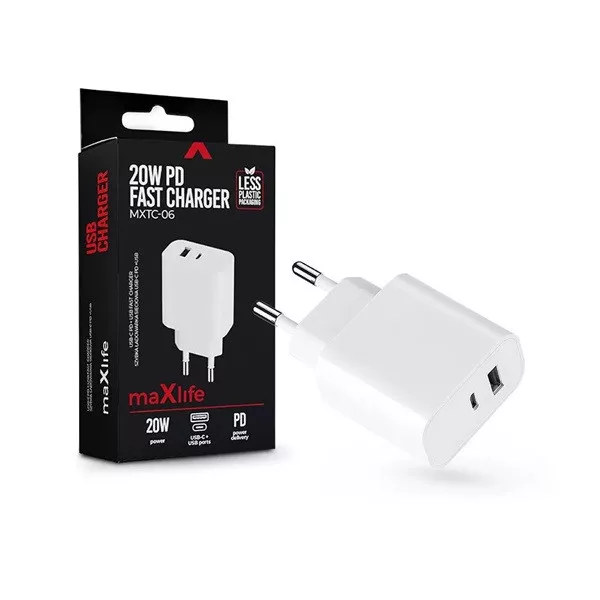 Maxlife ML063403 PD QC 20W USB - USB-C fehér töltő